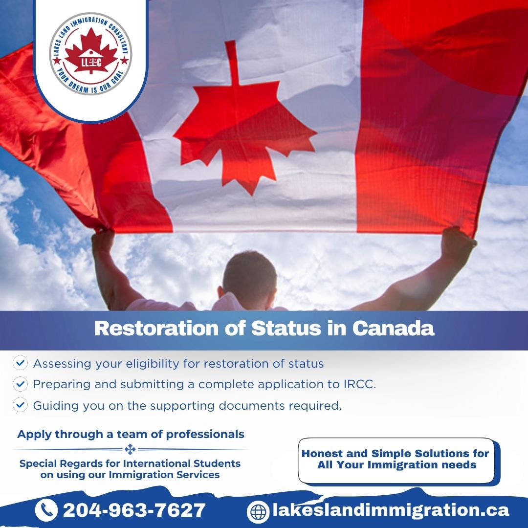 At Lakes Land Immigration, based in Winnipeg, Manitoba, we offer expert assistance with restoring your status, whether you’re a student, worker, visitor, or in a transitional immigration phase.